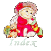 K is for Kris Kringle so merrily he stands He is who they call Santa in so many lands.
