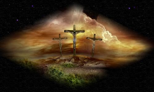 Three crosses stand for all to see.
